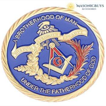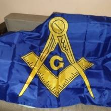 Masonic Flag With Blue Background And Golden Freemason Symbol