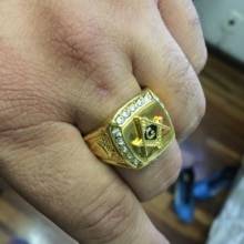 An exclusive and expensive-looking masonic ring with freemason symbol & crystal stones.